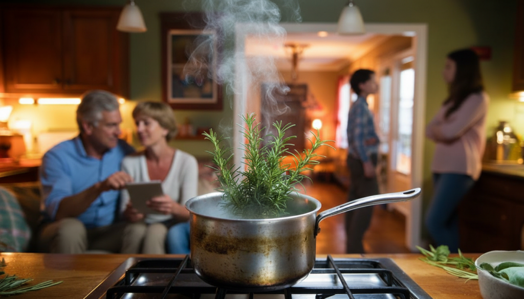 I’ve noticed something a little strange over the years. Boiling rosemary has the most dramatic effects on homes where people are emotionally holding their breath. You add some herbs, and all of a sudden everyone is “too sensitive,” “too nostalgic,” or “too annoyed.” The smell brings back memories of old fights, old Sundays, and old times. It makes you think of how you want things to feel: warm, clear, and easy. *And when reality doesn’t match that picture, the gap can hurt.* One person loves the smell, another hates it, and a third pretends not to notice but opens a window too hard. The family’s silent map of alliances and tensions comes out without them saying a word.
