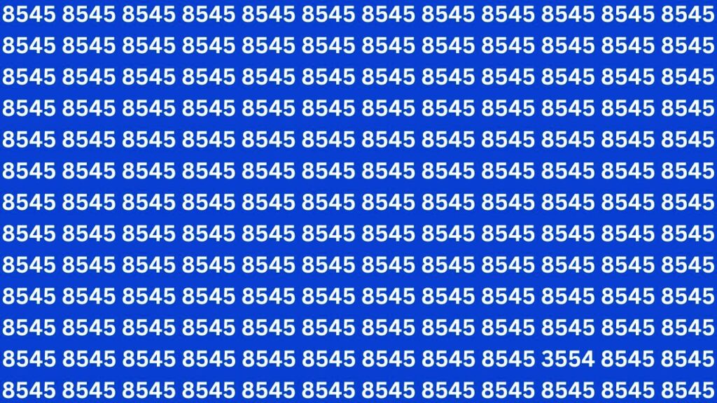 Optical illusion challenges provide a fun way to test your visual perception and mental sharpness. These puzzles look simple at first but include subtle visual differences that your brain usually misses. This challenge tests numerical recognition & quick thinking. You must find the number 3554 hidden among multiple rows of 3545 within eight seconds. It sounds easy but most people find it difficult once the timer starts. When you look at the numbers they appear identical. This occurs because your brain is designed to recognize patterns quickly rather than examine every detail. Your mind sees repeated numbers and assumes they are all the same. The puzzle uses this natural tendency to hide the one number that differs from the others. When you begin scanning the image your eyes may move rapidly between rows without properly absorbing what you see. You need patience and focus here. Instead of rushing through it slow down your scanning process. Look at each number carefully and concentrate on the digit sequence rather than the overall shape. The number 3554 is somewhere in the image but it looks nearly identical to all the surrounding 3545s. If you spotted the number within eight seconds it demonstrates fast visual processing skills & strong attention to detail. If you did not succeed there is no need to worry. These puzzles are designed to be challenging. The more you practice optical illusions like this the better your brain becomes at detecting small differences under time pressure. Many people enjoy these challenges because they offer more than entertainment. They enhance focus and strengthen short-term memory while giving the brain a quick workout. Spending a few minutes daily on visual puzzles can produce noticeable improvements over time.