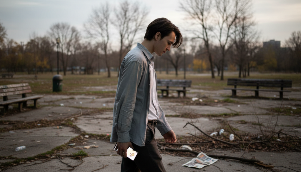 Some people see the ground as a safe place to be in cities full of screens, ads, and people watching them. When you look down, you get fewer social signals. Less eye contact means fewer chances of being judged, interrupted, or forced to interact with someone you don’t want to.